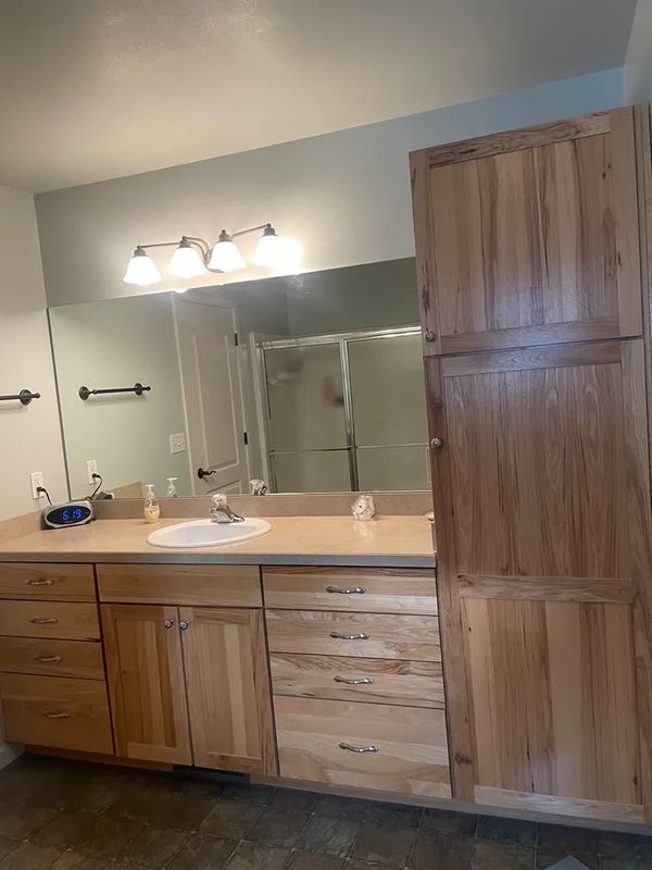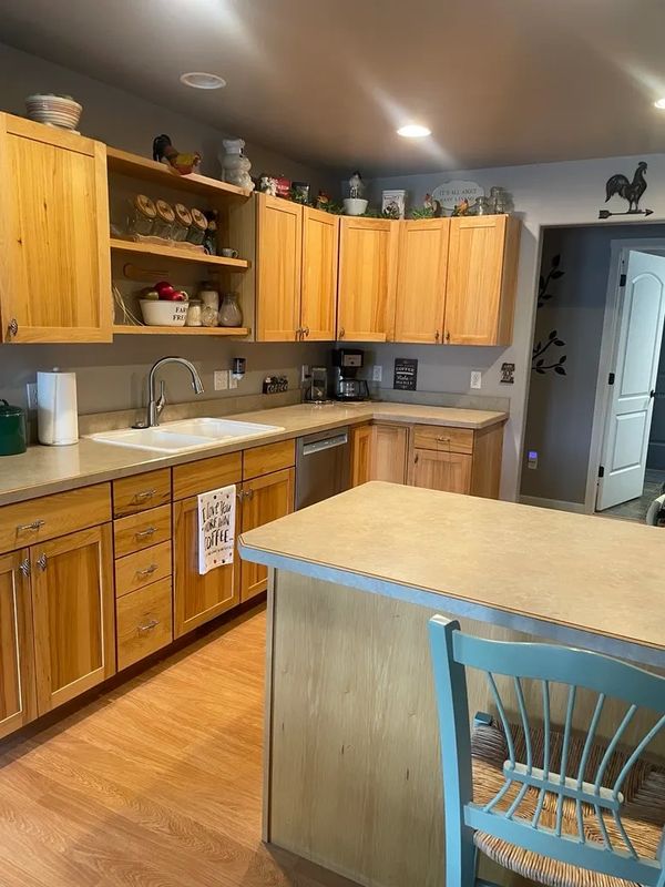 Kitchen/dining room with access to a deck Ample storage throughout, including a 2-car garage.